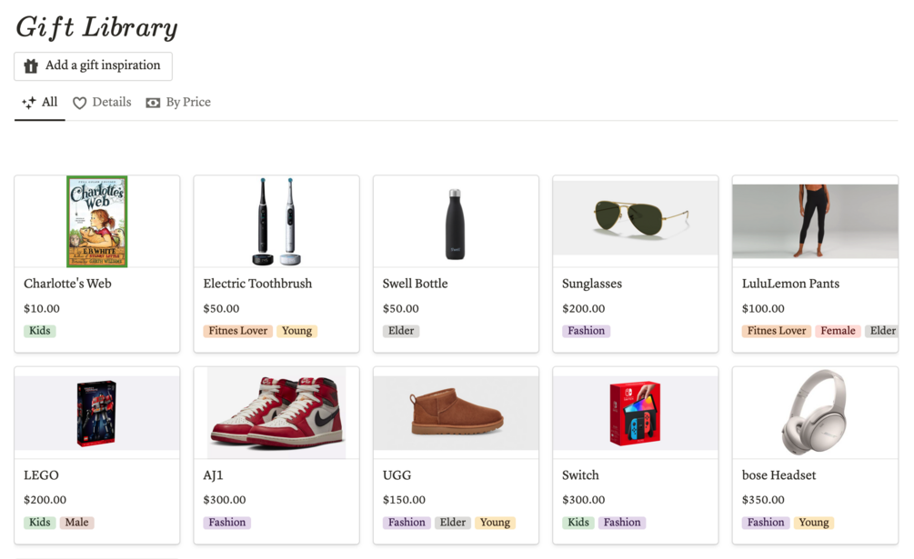 - Gift Library: Keep a digital record of gift ideas and purchases. Never stress over finding the right gift again.